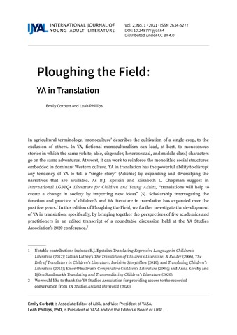 Corbett, Emily and Phillips, Leah (0012) Ploughing the Field: YA in Translation. The International Journal of Young Adult Literature, 2 (1). pp. 1-15. ISSN 2634-5277