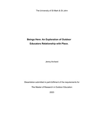 Archard, Jenny (2023) Beings Here: An Exploration of Outdoor Educators Relationship with Place. Masters thesis, Plymouth Marjon University.