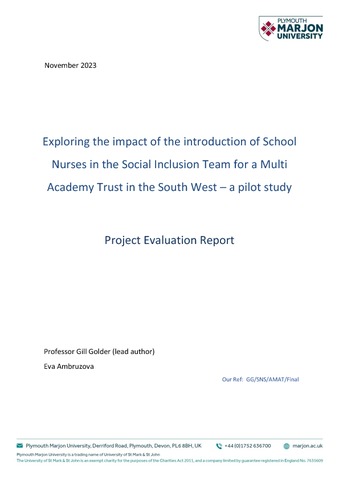 Golder, Gill and Ambruzova, Eva (2024) Exploring the impact of the introduction of School Nurses in the Social Inclusion Team for a Multi Academy Trust in the South West – a pilot study Project Evaluation Report. [Report]